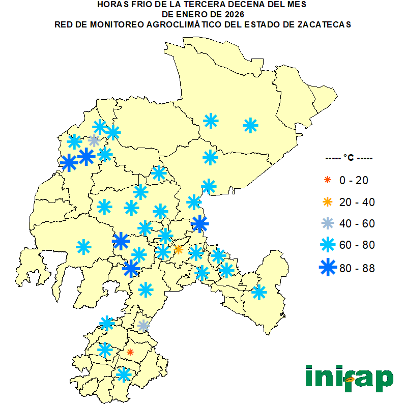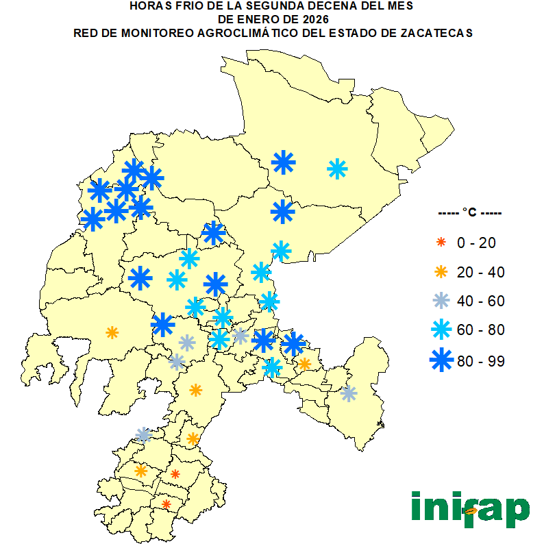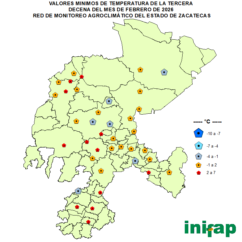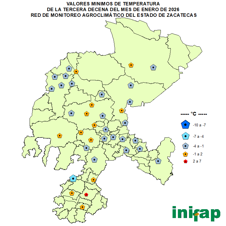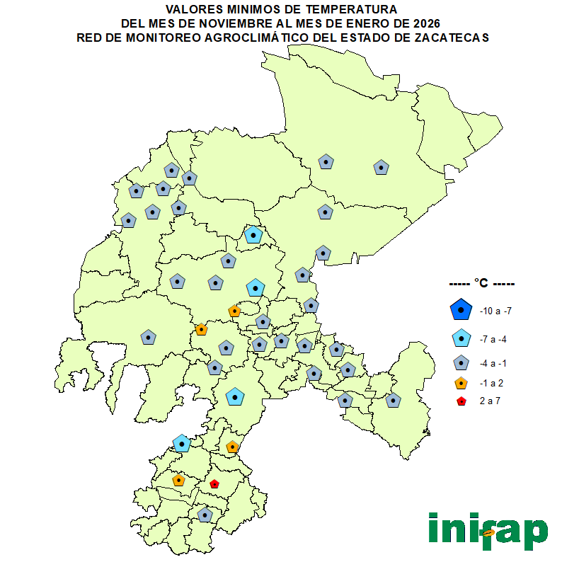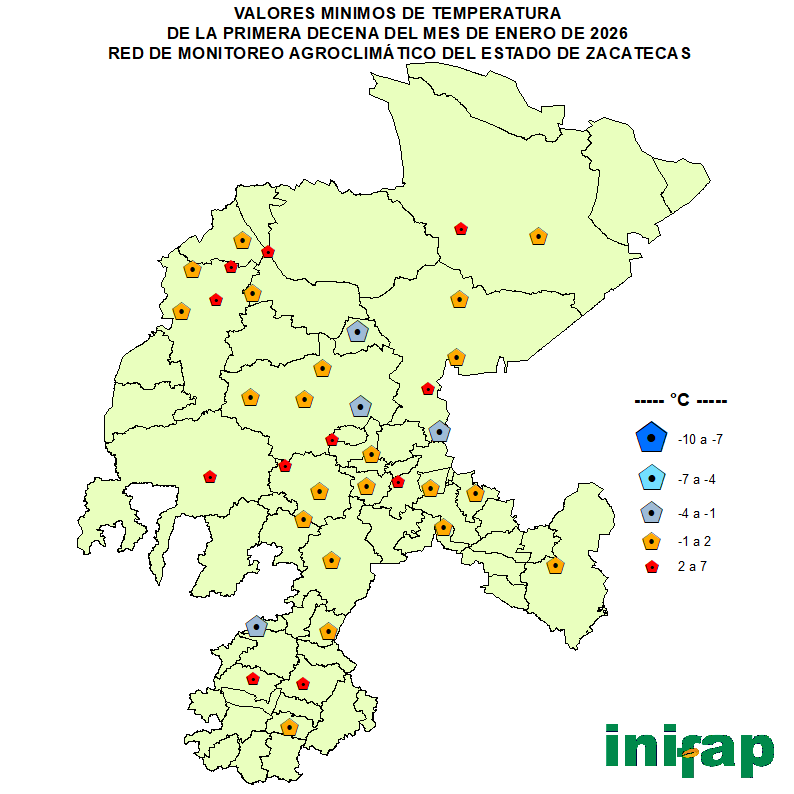 Con base en los datos registrados por las estaciones automáticas de la Red de Monitoreo Agroclimático del Estado de Zacatecas, se presentan los mapas siguientes:
